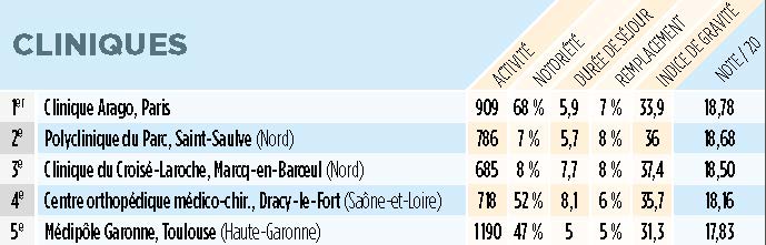 Pour la première fois, depuis la création de ses classements des Cliniques et Hôpitaux de France par Le Point, la Clinique Arago est première dans ses deux domaines d’hyper-spécialisation la mise en place de Prothèse totale de hanche et du Genou.