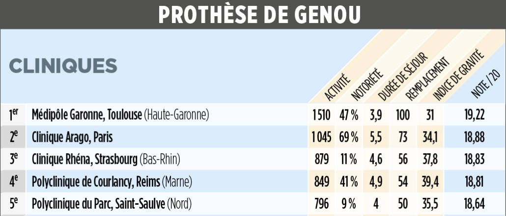 La clinique poursuit la consolidation dans le positionnement dans la prise en charge du genou du sportif avec sa place au sein des meilleures cliniques de France dans la chirurgie du Ligament Croisé Antérieur (LCA).