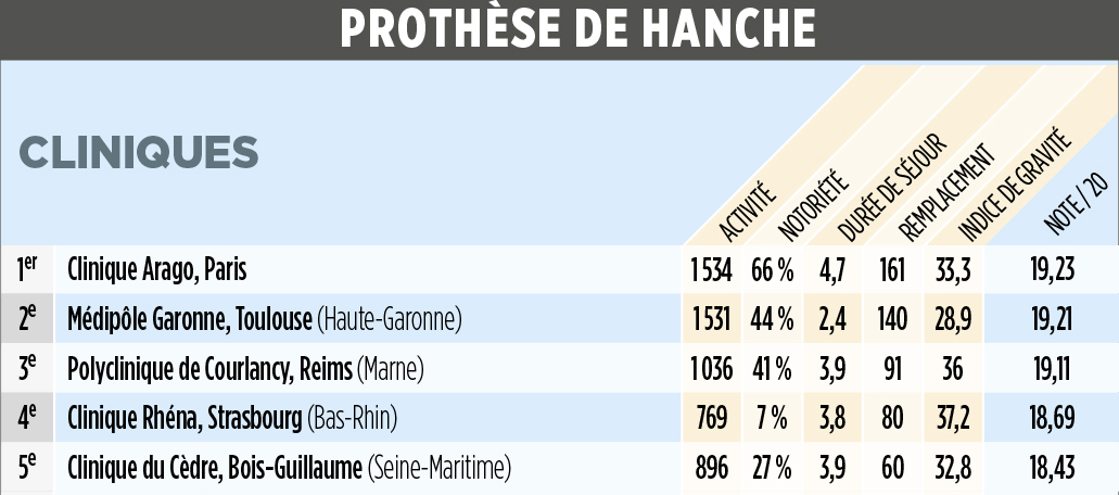Une fois de plus , la Clinique Arago est saluée par le magazine et figure dans le tableau d’honneur dans ses domaines de prédilections La Prothèse totale de Hanche (1re) et la Prothèse totale du Genou (2e) sur le plan national malgré le contexte difficile de la pandémie de Covid19.