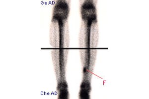 La scintigraphie osseuse : Cet examen (injection d’un traceur) est aussi très sensible et montre une « tache » brillante là où l’os travaille pour réparer.