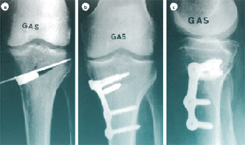 L’intervention dure environ une heure. Je réalise une coupure partielle du tibia (ostéotomie) pour l’ouvrir et redresser l’axe. Cette ouverture est maintenue par une plaque vissée et comblée par un substitut osseux ou une greffe.